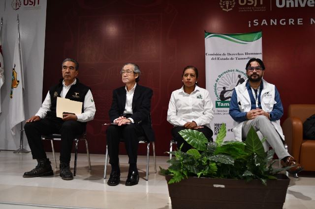 La inauguración contó con la presencia del rector de la USJT, Jorge Lumbreras Castro; la coordinadora de la Comisión de Derechos Humanos del Estado de Tamaulipas (CODHET), Sandra De la Rosa Guerrero; y el director de lo Normativo Administrativo de la Coordinación General Jurídica de la SSPT, Ricardo Puebla Ballesteros.