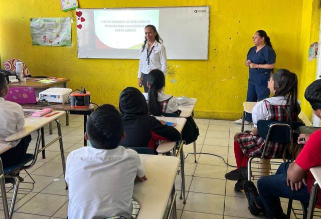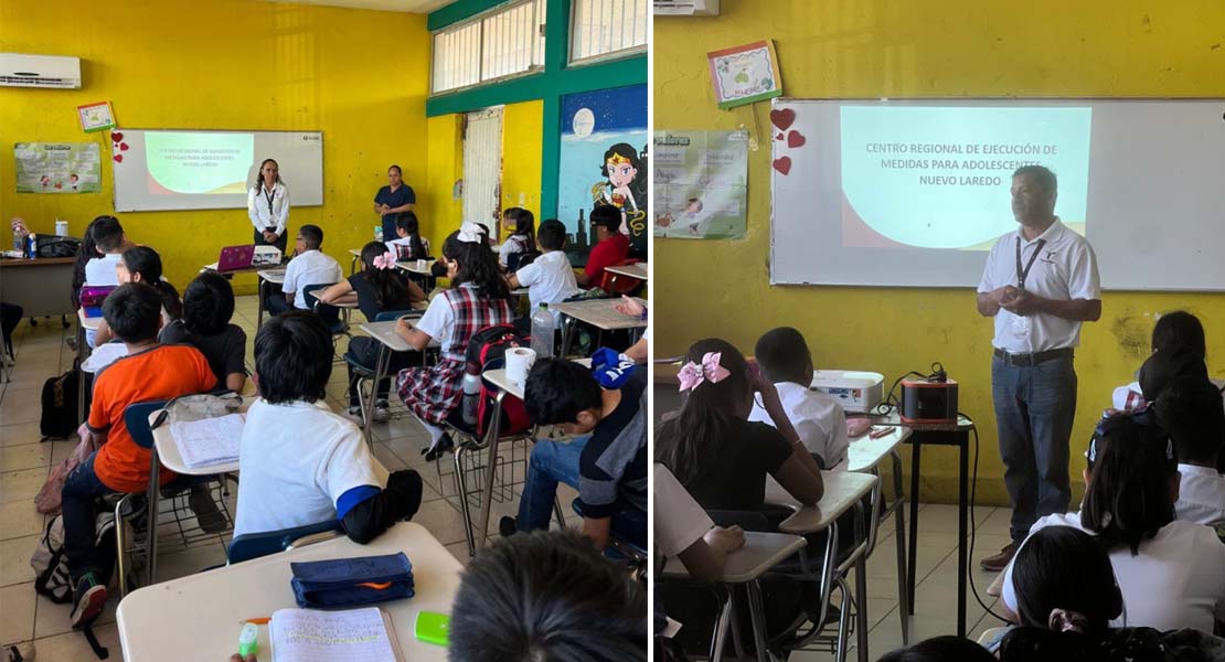 Nuevo Laredo, Tamaulipas.- Como parte de las acciones para prevenir y reducir el delito entre la población menor de edad, personal del Centro Regional de Ejecución de Medidas para Adolescentes (CREMA) del municipio de Nuevo Laredo visitó la Escuela Primaria “Miguel F. Martínez”, en la cual impartió una plática informativa.