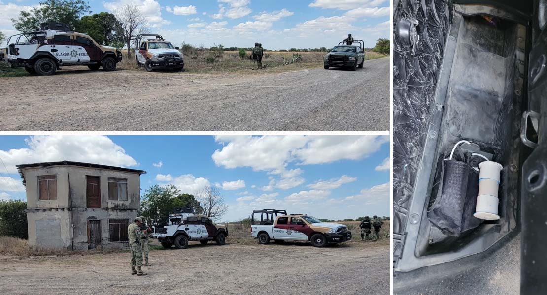 Cd. Victoria, Tamaulipas.- Siete artefactos explosivos improvisados fueron asegurados y destruidos por fuerzas estatales y militares tras ser localizados dentro de una camioneta abandonada en una brecha de Gustavo Díaz Ordaz; durante el operativo, también fue neutralizado un dron.