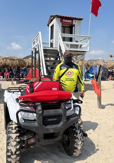 Ciudad Madero, Tamaulipas.- Con el objetivo de garantizar la seguridad y brindar una atención oportuna a los turistas, la Coordinación Estatal de Protección Civil implementa un operativo integral en Playa Miramar en coordinación con autoridades de los tres órdenes de gobierno y grupos voluntarios.