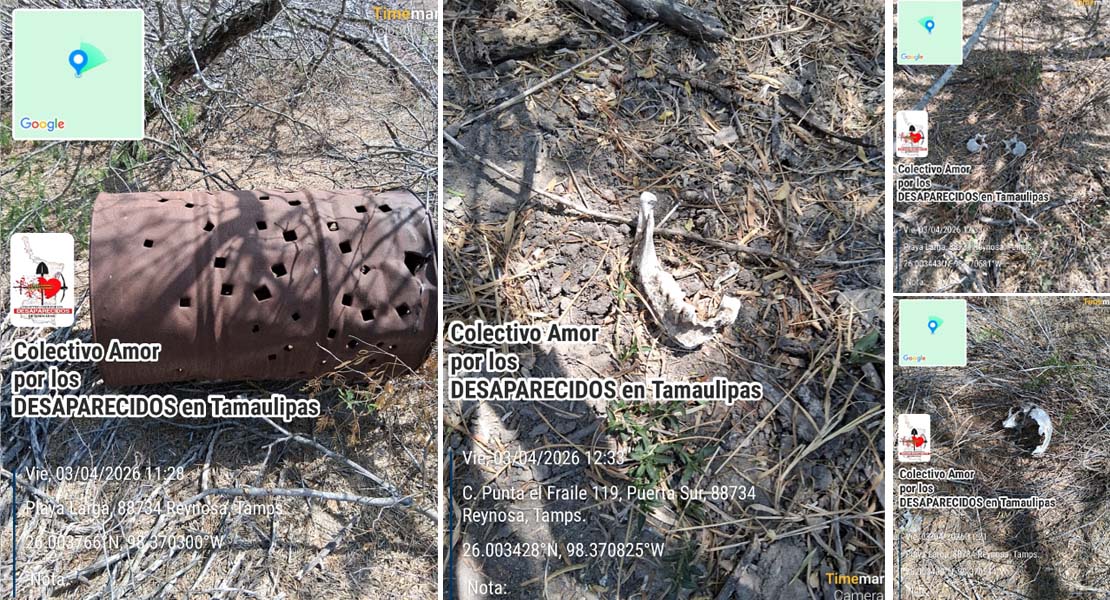 Cd. Victoria, Tamaulipas.- Un nuevo cementerio clandestino presuntamente vinculado al crimen organizado fue localizado este viernes en Reynosa por integrantes del Colectivo Amor por los Desaparecidos, quienes hallaron restos óseos de al menos siete y hasta 14 personas.