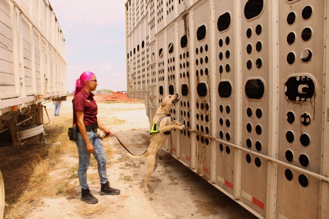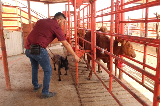Ciudad Victoria, Tamaulipas.- Con el firme compromiso de reforzar la sanidad en el sector pecuario, el Gobierno del Estado, a través de la Secretaría de Desarrollo Rural, Pesca y Acuacultura, avanza en la implementación de acciones preventivas para la detección oportuna del gusano barrenador del ganado (GBG), mediante el uso de binomios caninos especializados.