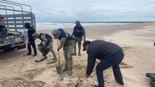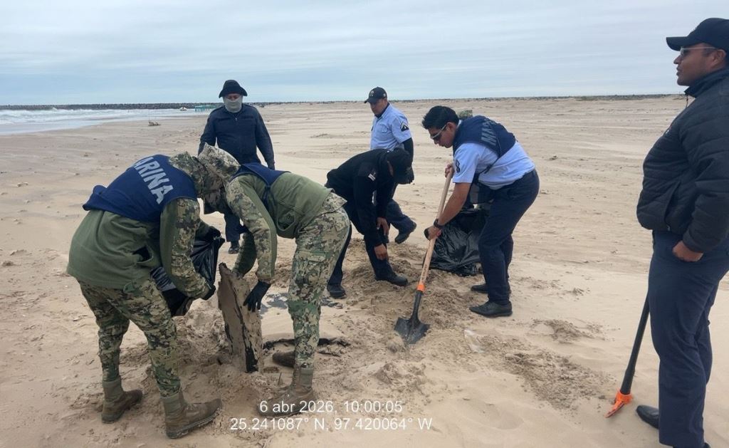 Se mantienen acciones para la contención de hidrocarburo en las costas del estado de Tamaulipas; en este contexto, personal de la Secretaría de Marina hoy recorrió aproximadamente 17 kilómetros en las playas Puerto Morelos (Mezquital) y Costa Azul (Bagdad), donde se recolectaron aproximadamente 236 kilogramos de hidrocarburo.